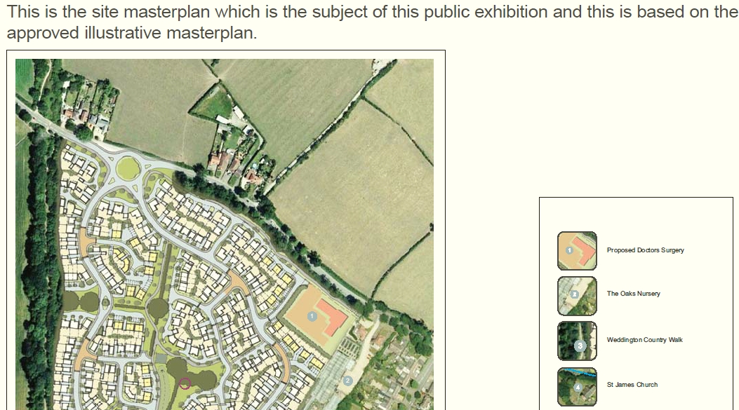 I have been monitoring this project since the community asked planners and developers to provide a GP surgery when Hallem submitted the planning application for over 300 homes on the site near Church lane Weddington. The application was rejected by the planning committee but approved by a planning inspector after a planning inquiry at the start of 2012. The inspector agreed that the GP surgery was vital to make that development acceptable and required the developer to provide the land for free to the NHS.