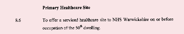 That point of 50 occupied homes has been passed around four years ago as now around 300 are occupied and the development is complete. Since 2015 myself and many others have asks first NHS Warwickshire and more recently Warwickshire North Clinical commissioning group WNCCG) for updates. By January 2019 I attended a sight visit with the CCG, NHS England, architects and Public health (part of WCC). I had a progress meeting with the CCG and public health officer. I was provided a briefing note and told there would be consultation and more details in June. The April briefing showed an requirement for new surgery at the end of 2020.