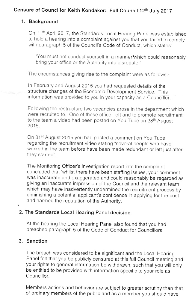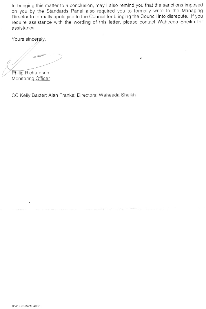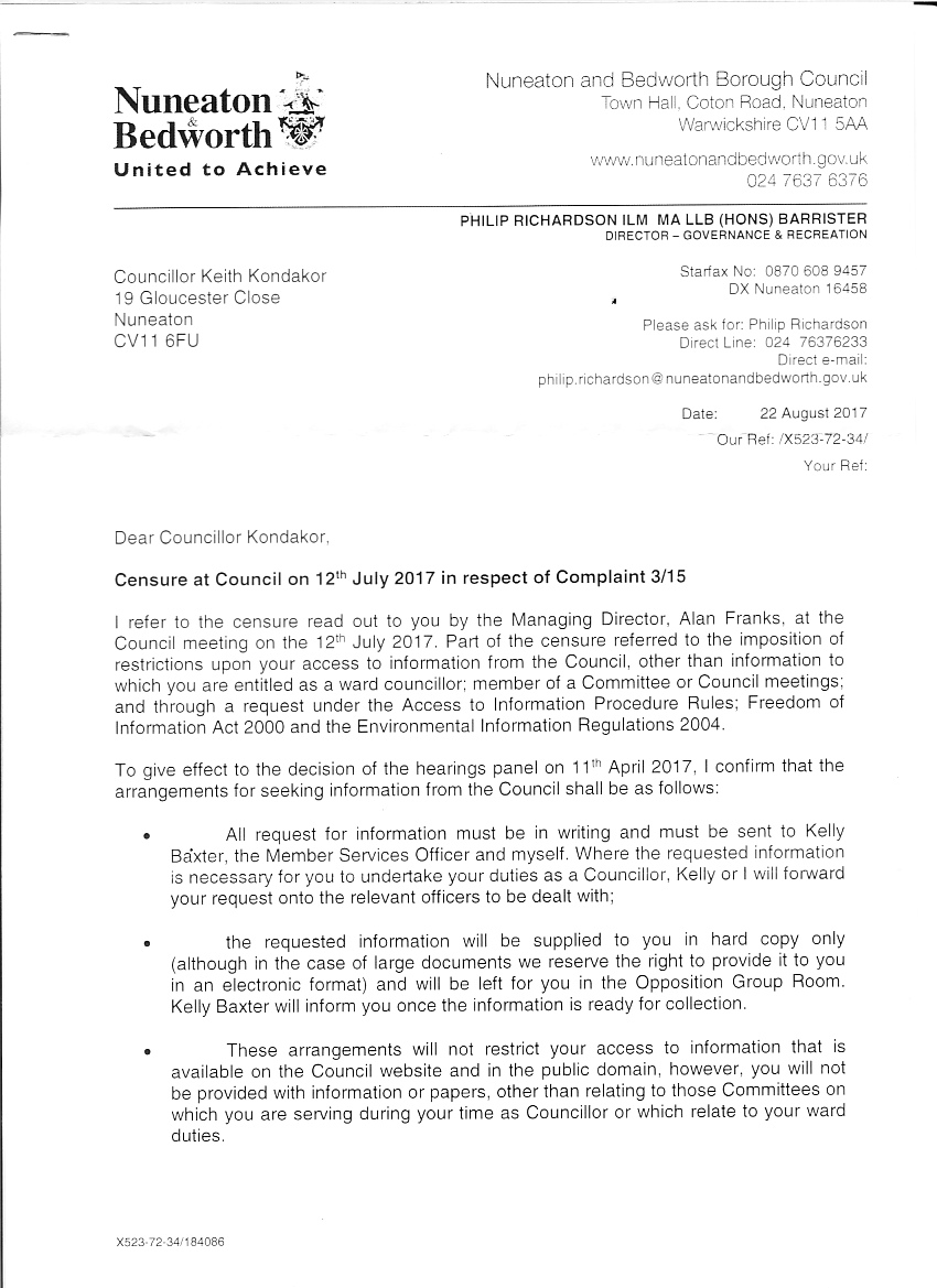 The result of this sanction is that it will be more difficult help residents and to hold the inept council to account.