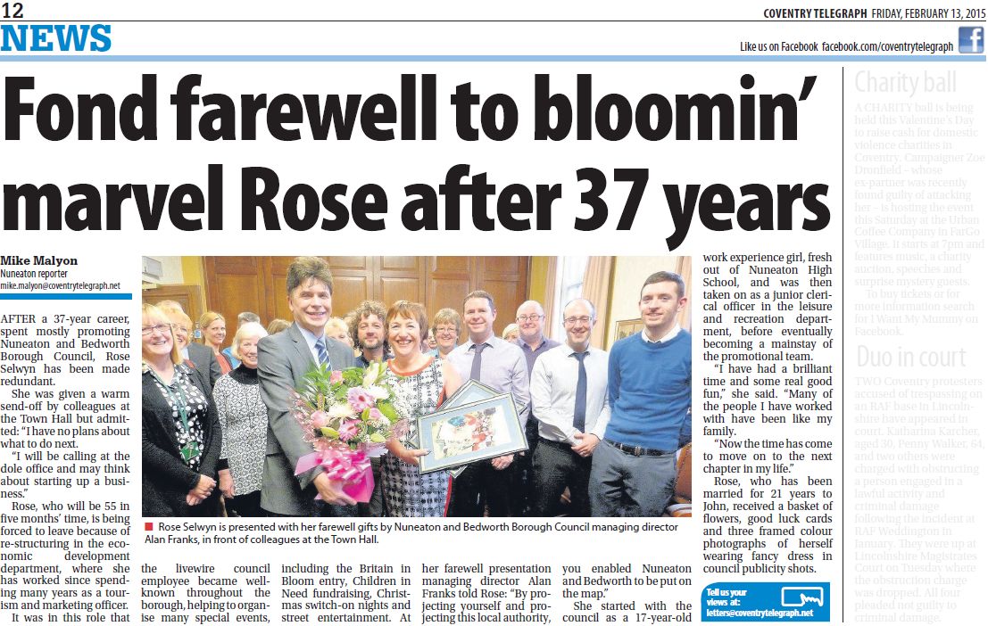 Now I have been found guilty by the council’s Kangaroo court of misusing information obtained as a councillor. I did ask what was going on as a councillor but the general information about staff turnover and restructuring was very public. It seems the Managing Director even had his picture taken saying good bye to a key member of staff,